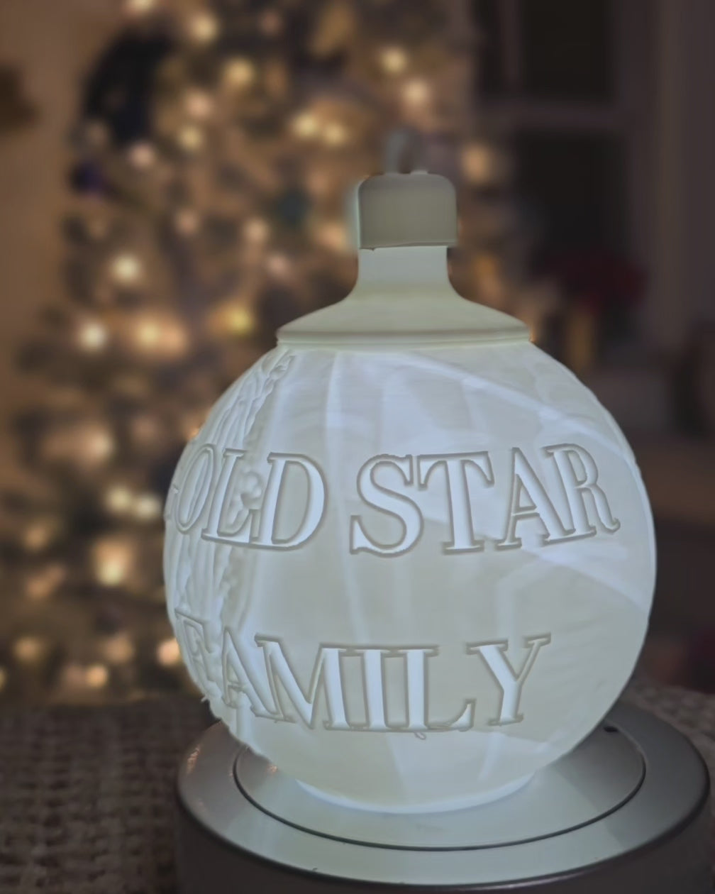 Each ornament is custom 3D-printed to your specifications; please contact us for personalization options.